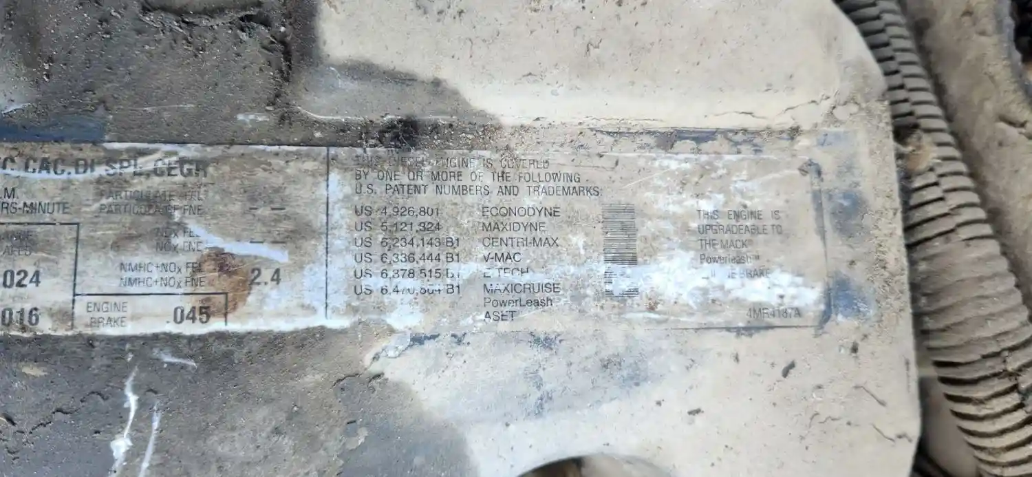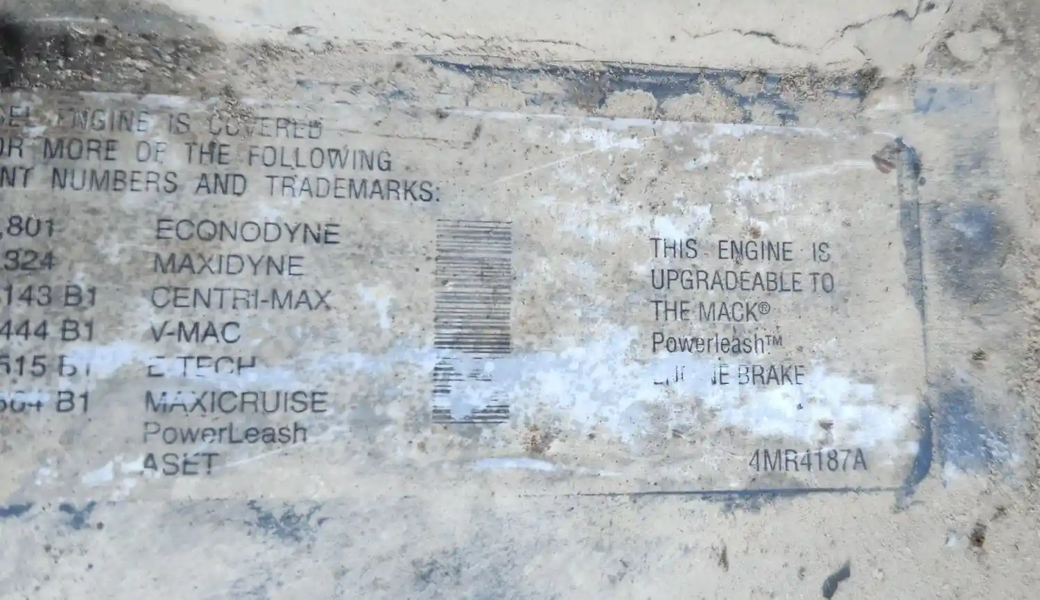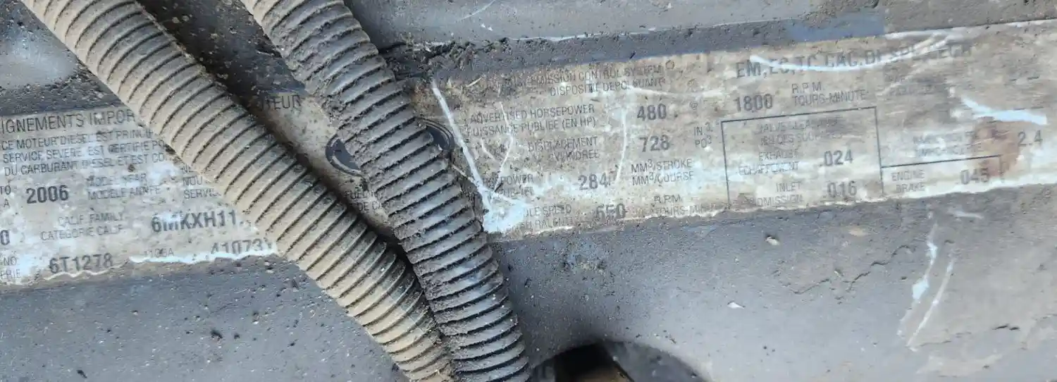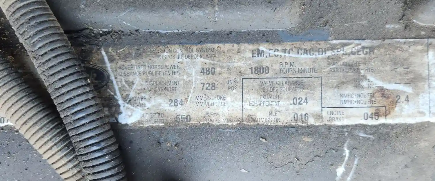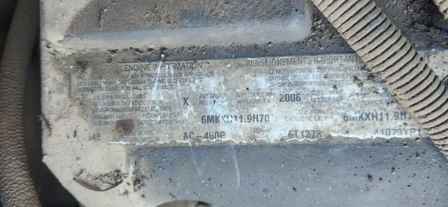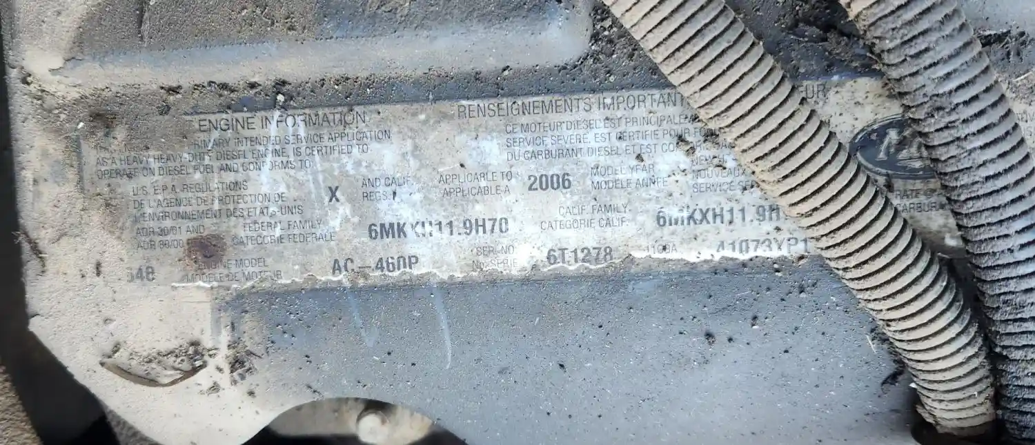 ( Used ) 2007 Mack AC-460P, ENGINE ASSEMBLY- Family Number: 6MKXH11.9H70 Displacement: 11.9L Horsepower: 480, Serial Number: 6T1278 Part Number: 4MR4187A, ECS: EM, EC, TC, CAC, DI, SPL, CEGR, ,
