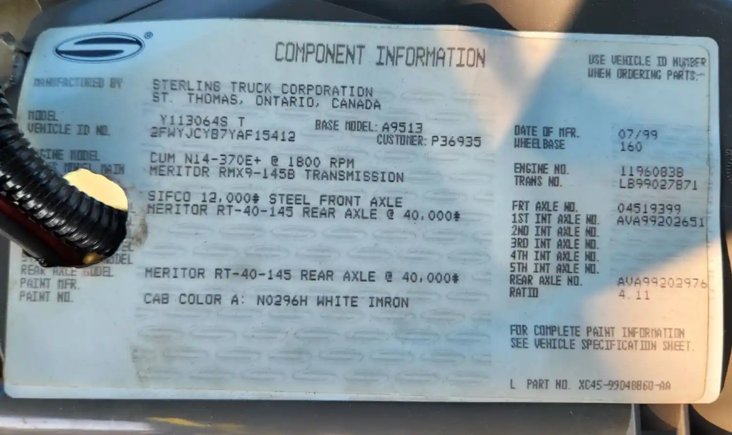 (Used) 2000 Sterling A9513, SUN VISOR
