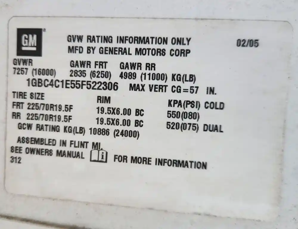 (Used) 2005 Chevrolet C4500, SUN VISOR