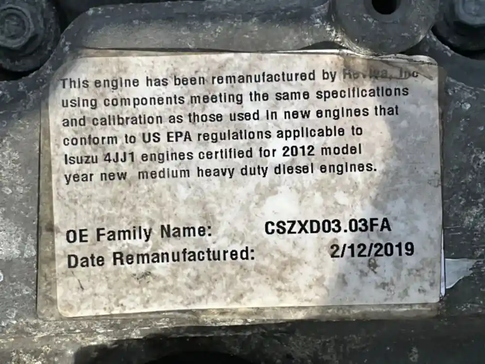 (Core) 2011 Isuzu 4JJ1-TC, ENGINE ASSEMBLY- Family Number: CSZXD03.03FA, Displacement: 3.0L, Horsepower: 150, ESN: 50419B004, Part Number: 4634707RM, No Turbo, Reference images for condition, ,