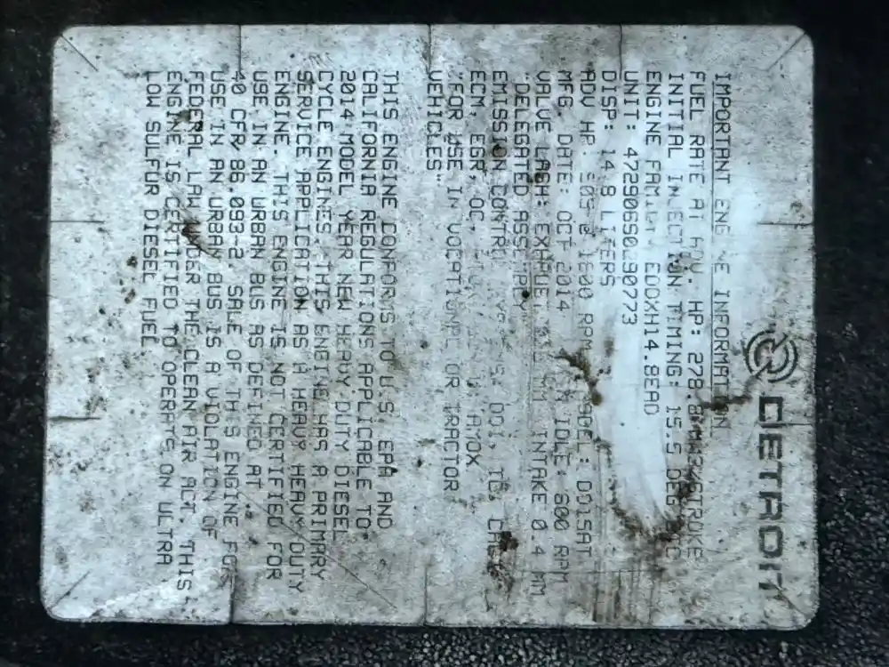 (Core) Engine does not Turn 360 Degrees Complete, 2014 Detroit DD15, ENGINE ASSEMBLY-