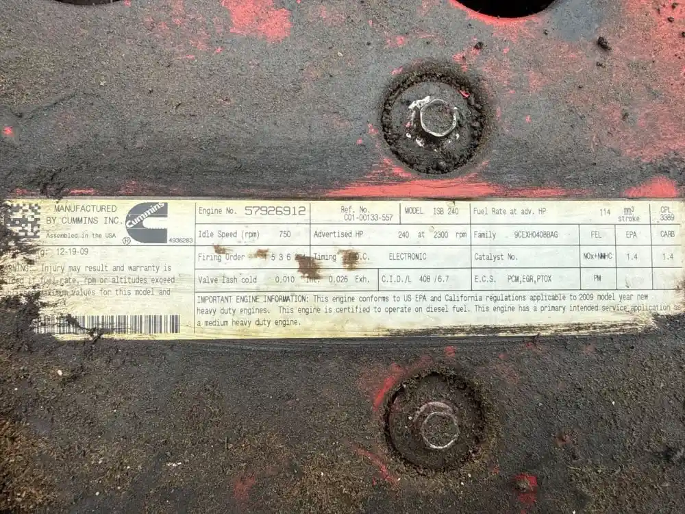 (Core) Engine does Turn 360 Degrees Complete, CUMMINS ISB 240, ENGINE ASSEMBLY- Family Number: 9CEXH0408BAG Displacement: 6.7L Horsepower: 240 Ar.No.CPL: 3389 ESN: 57926912 ECS: PCM,EGR,PTOX Reference images for condition 929 W PULASKI HWY
