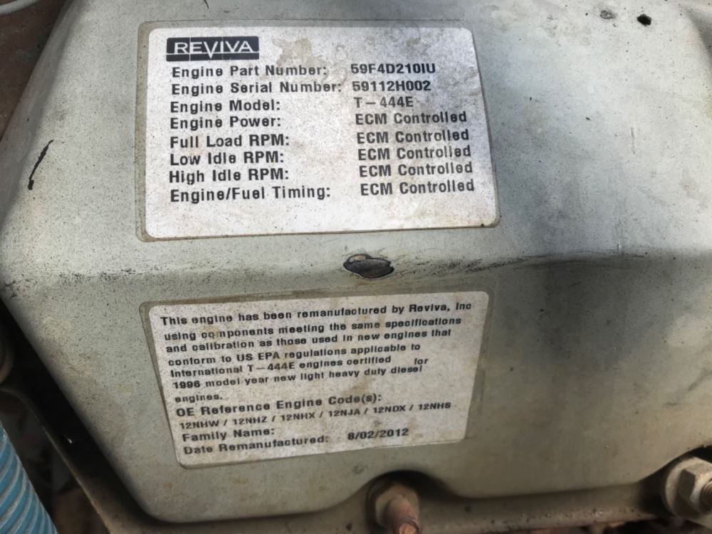 (USED) 1996 International T-444E (Reman in 2012), Complete Engine Assembly. S/N-59112H002 P/N-59F4D2101U HP-N/A CPL-5911 ECS-N/A Model-T-444E We ship Worldwide.