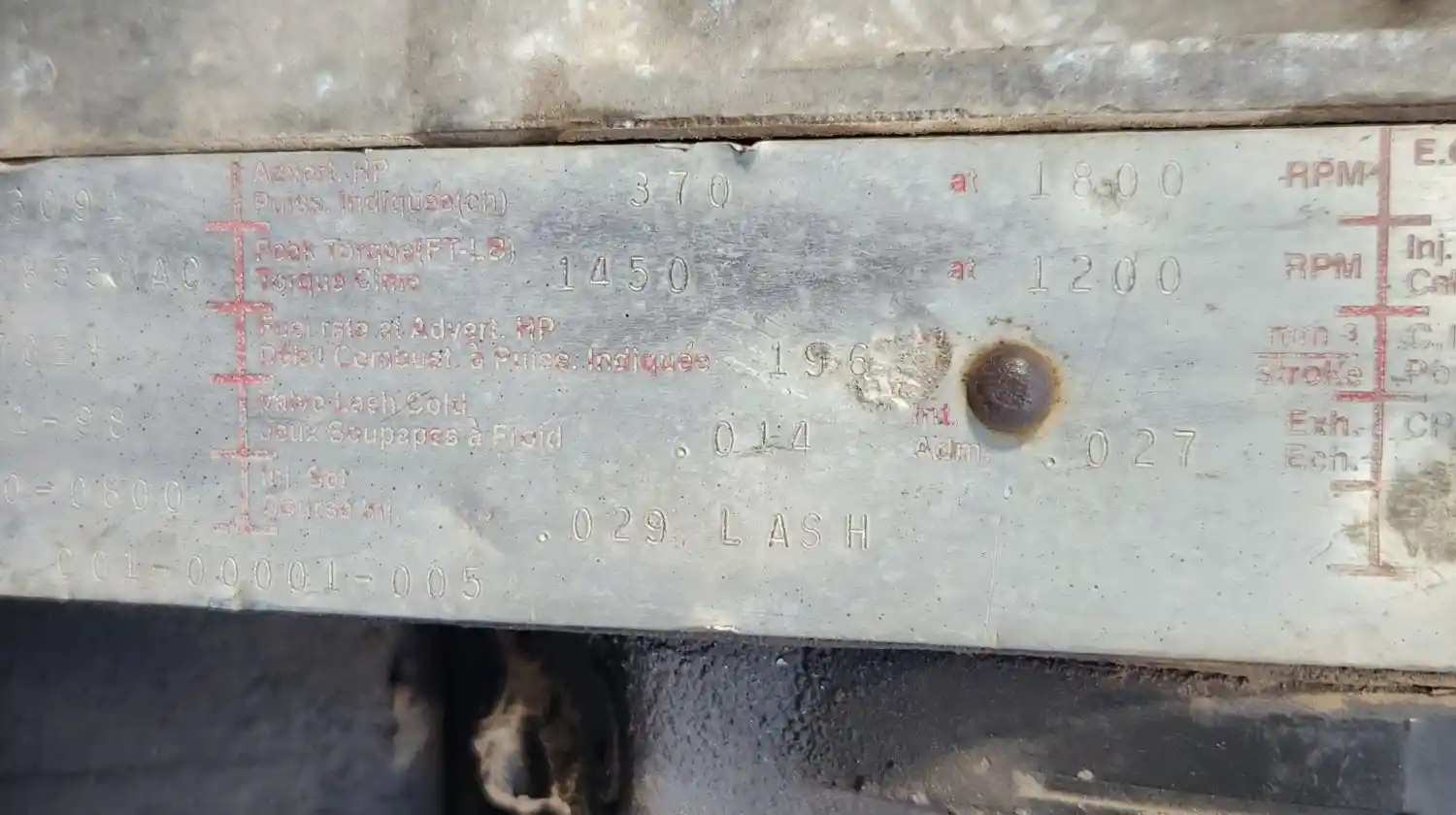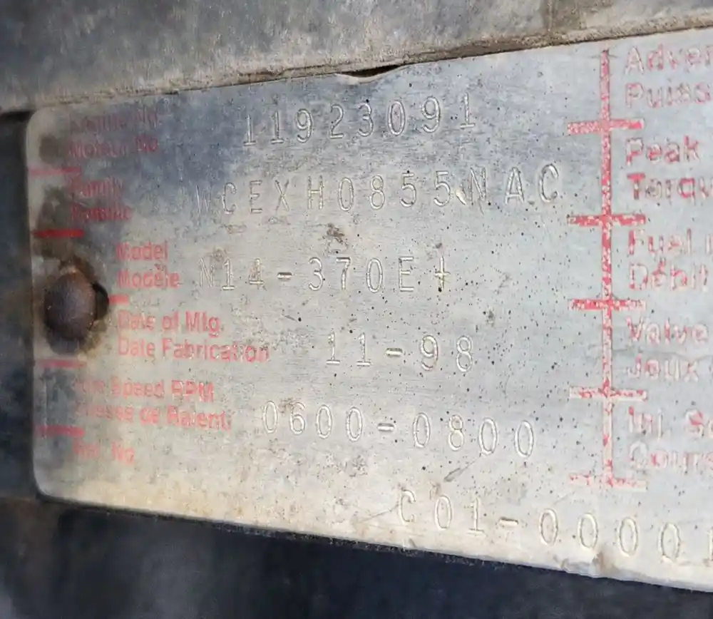 (Used) 1998 Cummins N14-370EI, ENGINE ASSEMBLY- Family Number: WCEXH0855NAC, Displacement: 14.0L, Horsepower: 370, Ar.No./CPL: 2389, Serial Number: 11923091, Part Number: C01-00001-005, E.C.S: PCM,