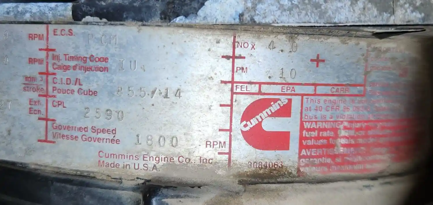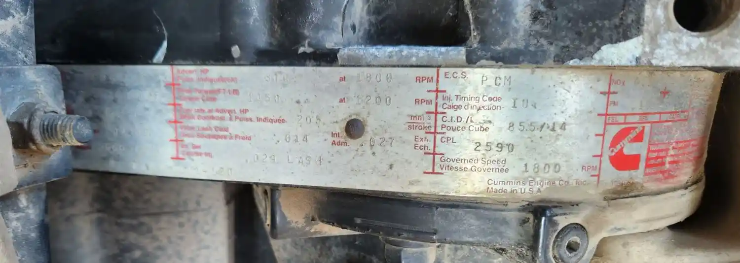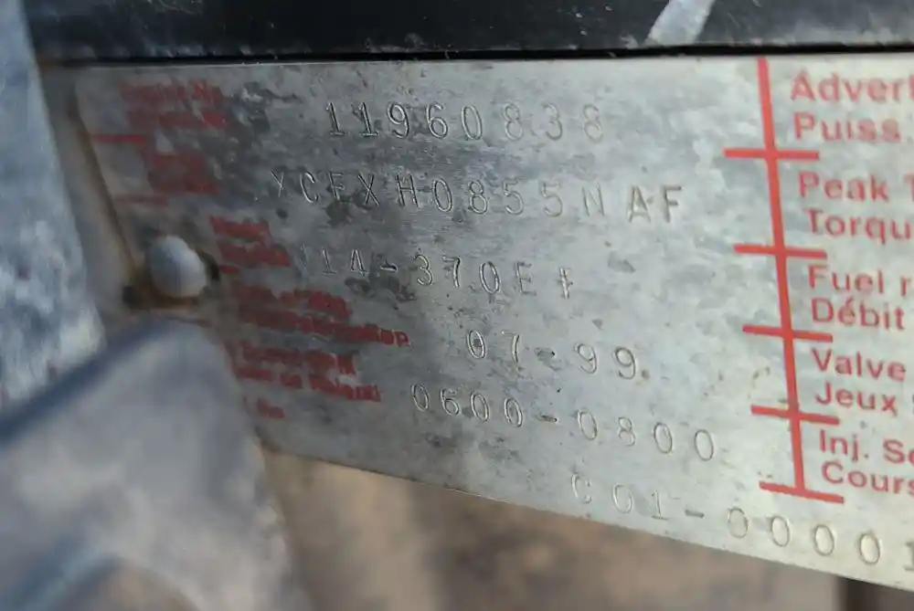 (Used) 1999 Cummins N14-370EI, ENGINE ASSEMBLY- Family Number: XCEXH0855NAF, Displacement: 14.0L, Horsepower: 370, Ar.No./CPL: 2590, Serial Number: 11960838, Part Number: C01-00001-120, E.C.S: PCM,