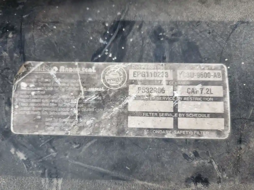 (Used) 2000 Ford F-750, AIR CLEANER- Part Number: EPG110233, Side: Center Of truck, Color: Black, Material: Plastic, Engine: Caterpillar 3126, Dimensions: L=20", D=10",
