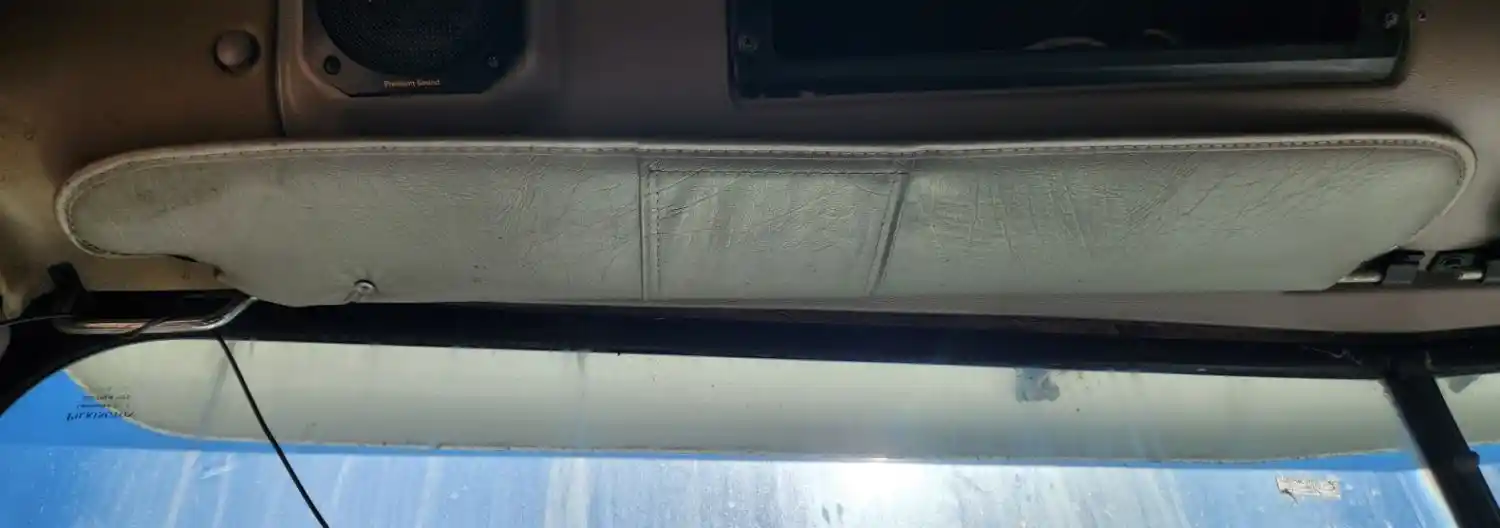 (Used) 2000 International 9400, SUN VISOR- Side: Driver Left Side, Color: Tan, Material: Vinyl, Type: Adjustable, Reference images for condition,