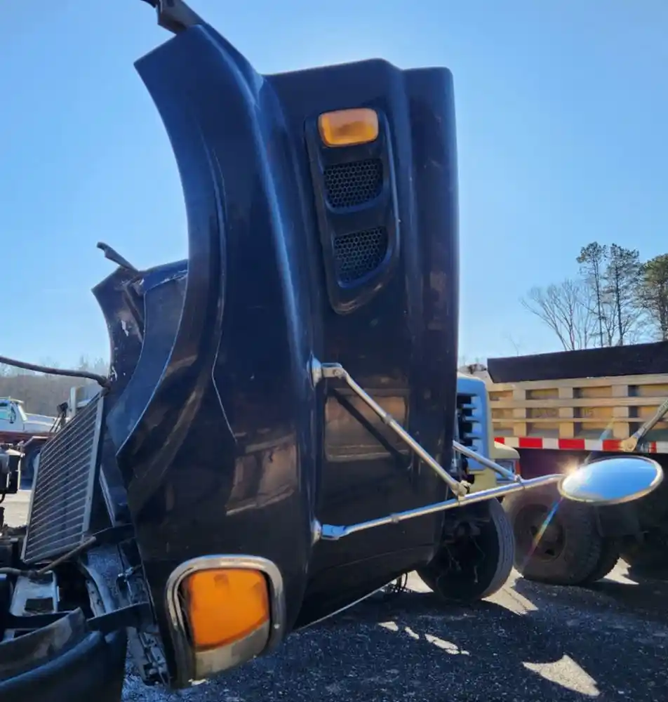(Used) 2000 Sterling A9513, HOOD ASSEMBLY- Length: 48.5", From Cowl to grille, Color: Black, Material: Fiberglass, Minor Damage Reference images for condition,