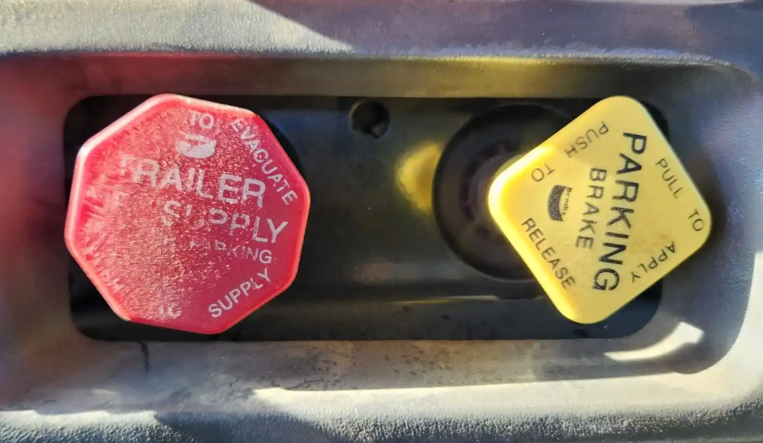 (Used) 2000 Sterling A9513, MISCELLANEOUS DASH SWITCHES- Controls: Trailer Air Supply, Parking Brake, Material: Plastic, Reference images for condition,