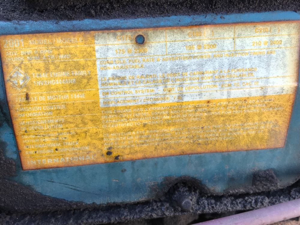 (USED) 2001 International T-444E, Complete Engine Assembly. S/N-1833558C1 P/N-1NVXH0444ANB HP-175 CPL1833 ECS-ECM, TC, CAC, DI Displacement-7.3L We ship Worldwide.