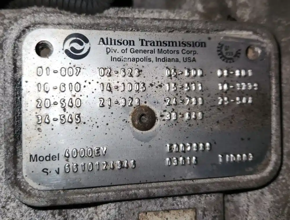 (Used) 2002 Allison (AT), TRANSMISSION ASSEMBLY- Model: 4000EV, Serial Number: 6610124946, Engine: Detroit Series 60,
