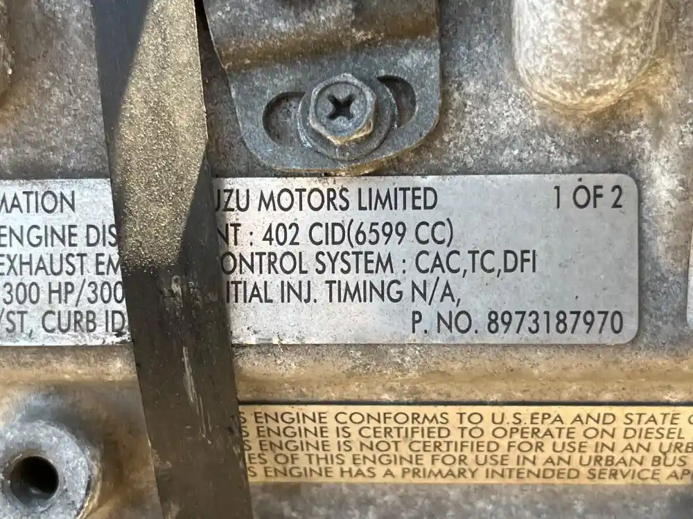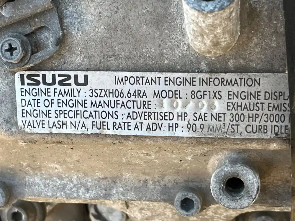 (Used) 2003 ISUZU 8GF1SX, ENGINE ASSEMBLY- LRM PREFIX ISUZU, 6.6L, 300 GROSS HP @ 3250 RPM 6.6L ISUZU 300 HP PWR OPTION(LRM) Family Number: 3SZXH06.64RA, Displacement: 6.6L, Horsepower: 300, Part Number: 8973187970, E.C.S.: CAC, TC, DFI, ,