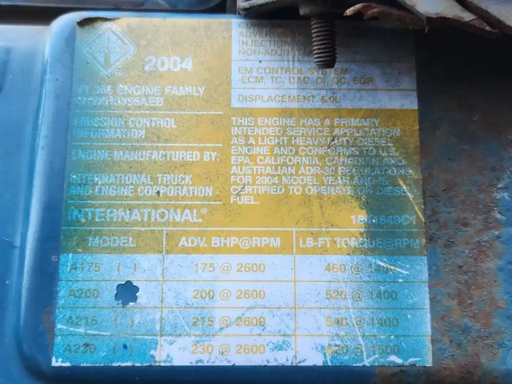 (Used) 2004 International VT 365, ENGINE ASSEMBLY- Family Number: 4NVXH0365AEB, Displacement: 6.0L, Horsepower: 200, Serial Number: 1844849C1, E.C.S.: ECM, TC, CAC, DI, CO, EGR, Reference images for condition,