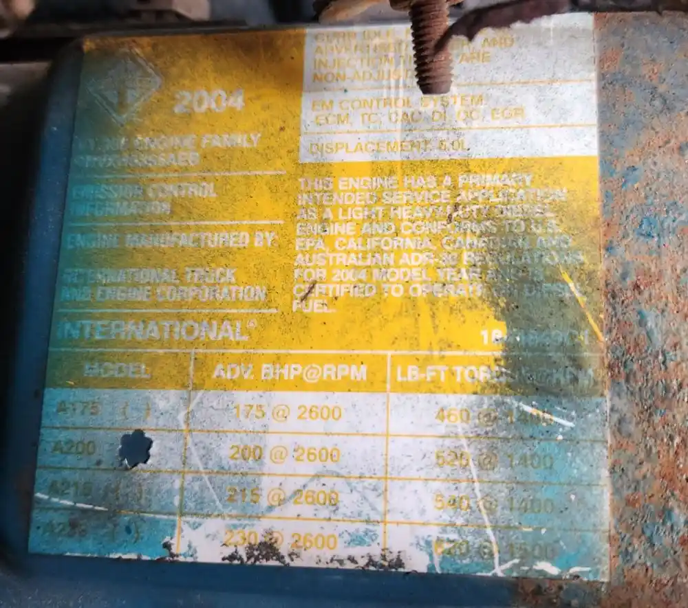 (Used) 2004 International VT365, ENGINE ASSEMBLY- Family Number: 4NVXH0365AEB, Displacement: 6.0L, Horsepower: 200, Serial Number: TBD, ECS: ECM, TC, CAC, DI, OC, EGR,