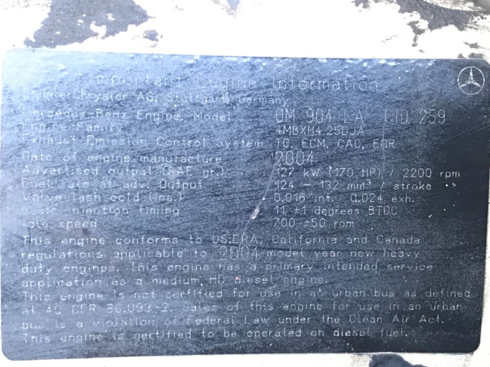 (USED) 2004 Mercedes Benz,OM904LA, Complete Engine Assembly. S/N