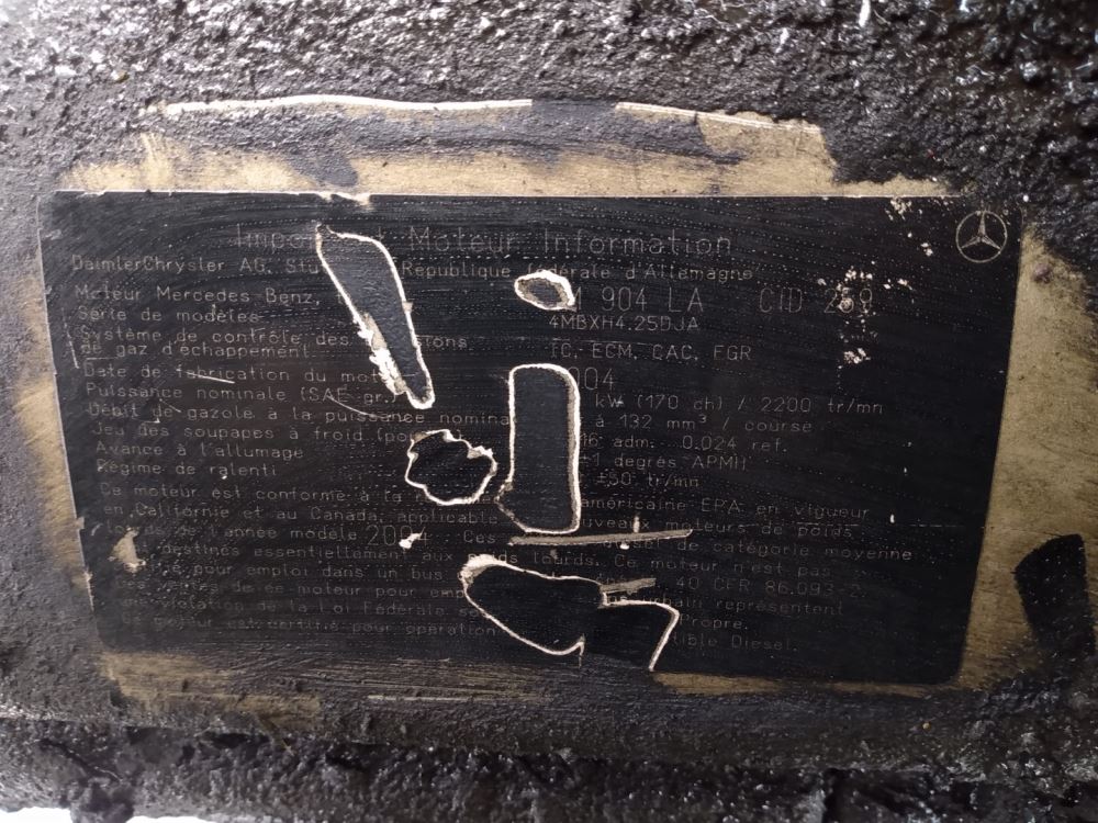 (Used) 2004 Mercedes OM904LA, ENGINE ASSEMBLY- Family Number: 4MBXH4.25DJA, Displacement: 4.25L, Horsepower: 170, E.C.S.: TC, ECM, CAC, EGR,