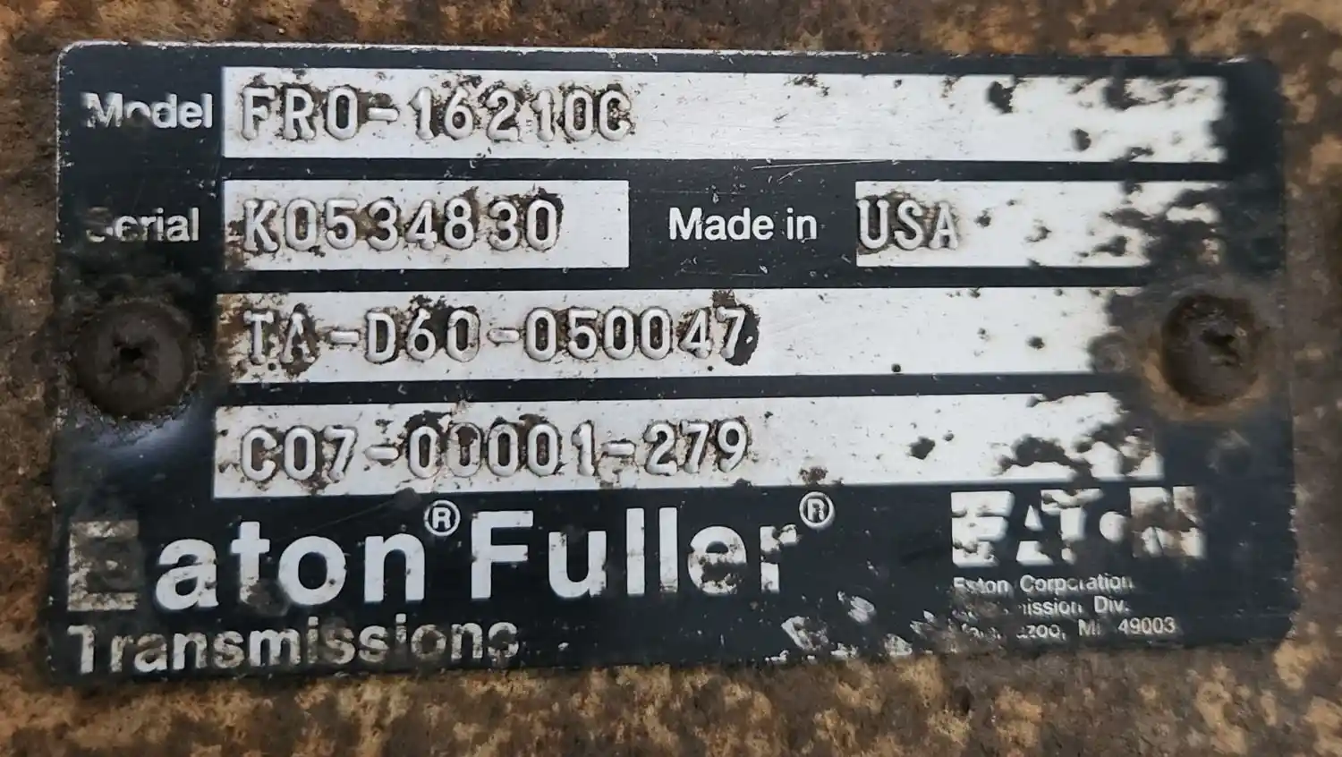 (Used) 2006 Eaton/Fuller (MT), TRANSMISSION ASSEMBLY- Model: FRO-16210C, Serial Number: K0534830, Part Number: C07-00001-279, Engine: Caterpillar C13,
