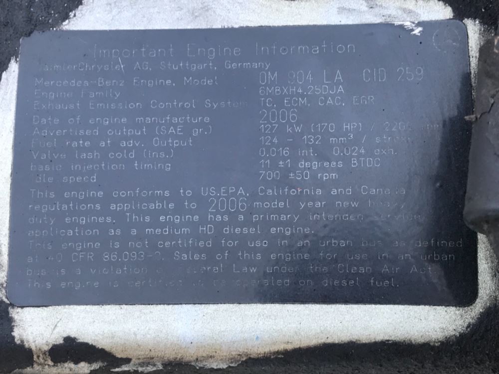 (USED) 2006 Mercedes 0M904A, Complete Engine Assembly. S/N-09045882098 P/N-6MBX4.25DJA HP-170 CPL-N/A ECS-TC, ECM, CAC, EGR Engine Model-0M904LA We ship Worldwide.