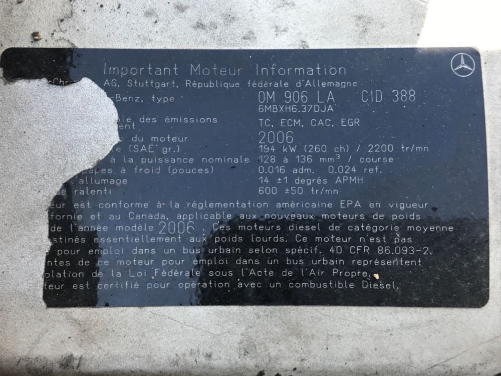 (USED) 2006 Mercedes Benz, Complete Engine Assembly. Bus Motor S/N-0906566997 P/N-6MBXH6.37DJA HP-170 CPL-0906 ECS-TC, ECM, CAC, EGR Model-OM906LA C.I.D-388 We ship Worldwide.