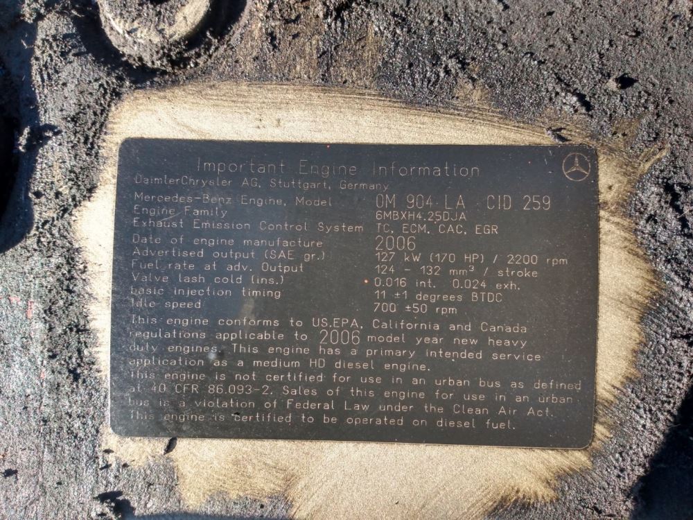 (Used) 2006 Mercedes OM904LA, ENGINE ASSEMBLY- Family Number: 6MBXH4.25DJA, Displacement: 4.25L, Horsepower: 170, E.C.S.: TC, ECM, CAC, EGR,