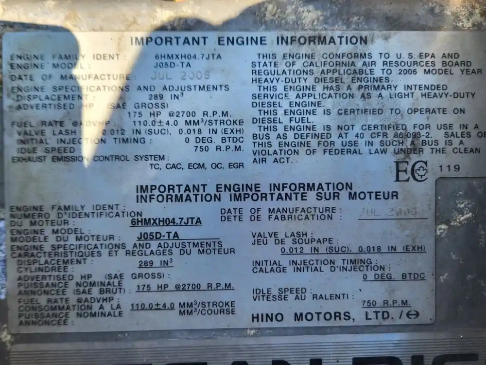 (Used) 2006 NISSAN J05D-TA, ENGINE ASSEMBLY- Family Number: 6HMXH04.7JTA, Displacement: 4.7L, Horsepower: 175, E.C.S.: TC, CAC, ECM, OC, EGR, ELKTON,MD 21921