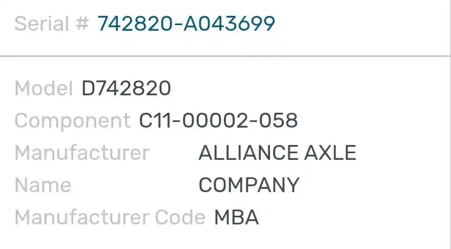 (Used) 2006 Sterling ACTERRA, DIFFERENTIAL GEARS ONLY- Part Number: C11-00002-058, Serial Number: 742820-A043699, Make: Axle Alliance, Model: RS17.5-2N, Ratio: 5.13, Capacity: 17,500 Lbs,