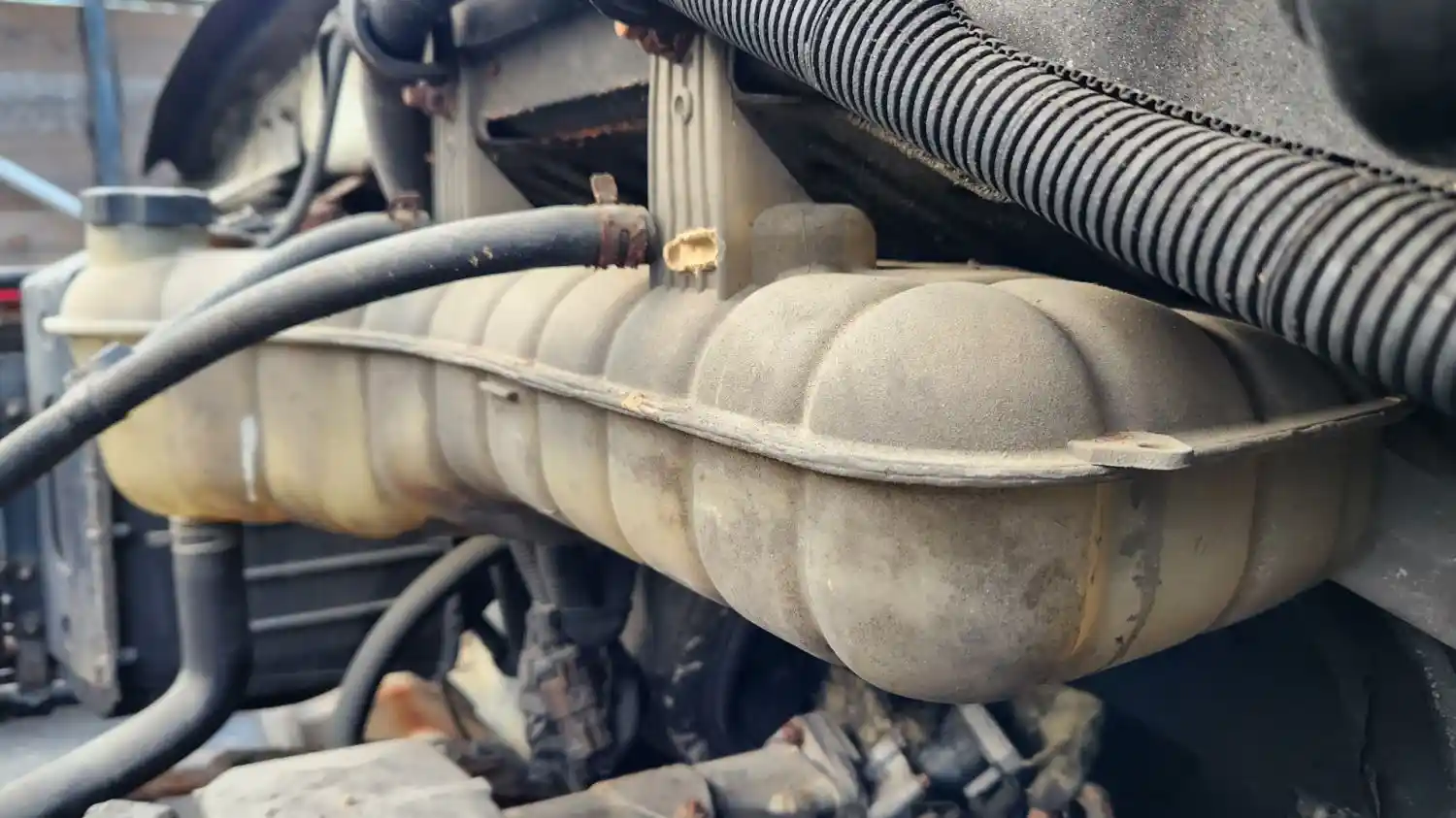 (Used) 2006 Sterling ACTERRA, RADIATOR OVERFLOW BOTTLE/COOLANT RESERVOIR- Location: Center Of Truck, Dimensions: L=24", H=6", W=8", Material: Plastic, Reference images for condition,