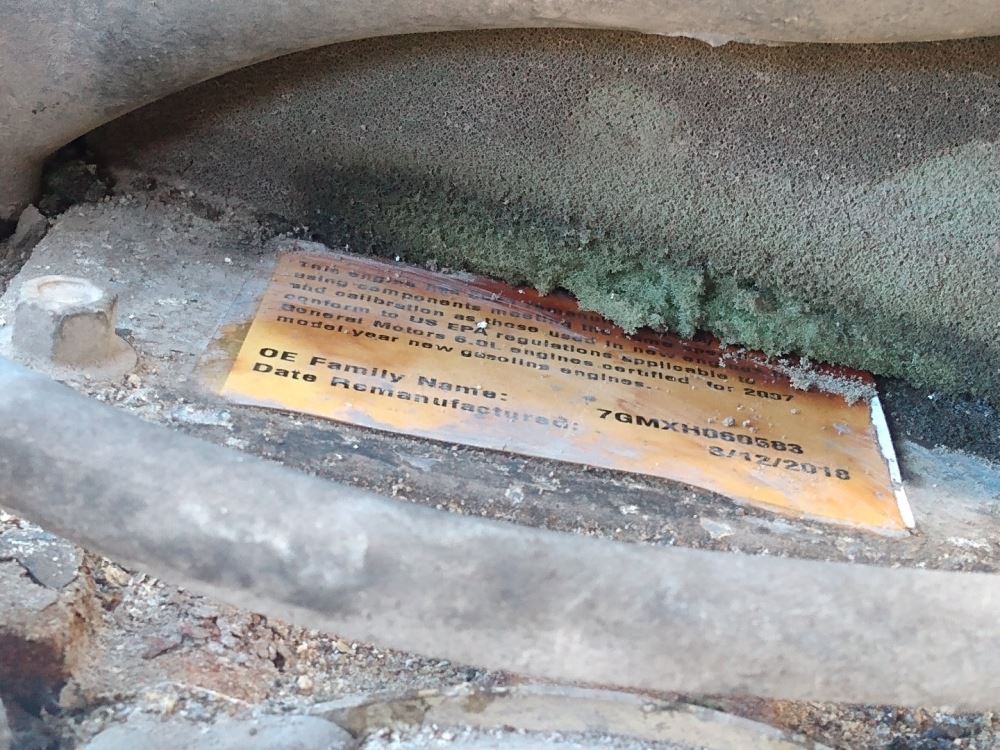 (Used) 2007 GM/Chev (HD), ENGINE ASSEMBLY- Family Number: 7GMXH060583, Displacement: 6.0L, Serial Number: 52118C083, Part Number: 52G7D335A, Remanufactured: 08/12/2018,
