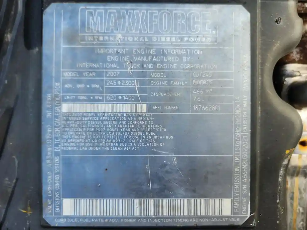 (Used) 2007 MAXXFORCE DT, ENGINE ASSEMBLY- Family Number: 7NVXH0466AGA, Displacement: 7.6 L, Horsepower: 245, ESN: 466HM2U3022021, E.C.S.: DI, TC, ECM, CAC, EGR, DOC, PTOX, . , .