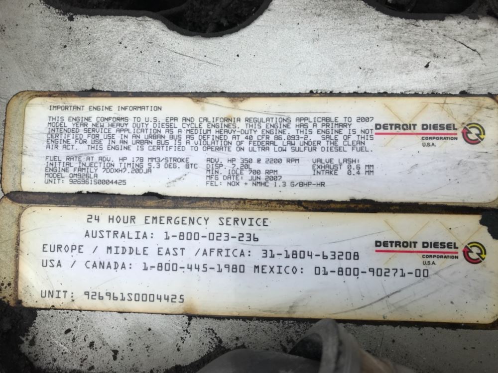 (USED) 2007 Mercedes Benz OM 926 LA, Complete Engine Assembly. S/N-926961S0004425 P/N-7DDXH7.20DJA HP-178/Max-350 CPL-9269 ECS-N/A Model-OM926LA We ship Worldwide.