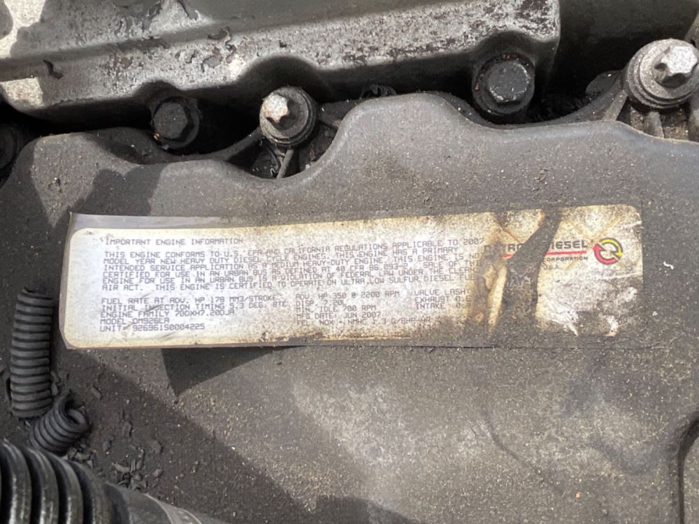 (Used) 2007 Mercedes OM 926 LA, ENGINE ASSEMBLY- Family Number: 7DDXH7.20DJA, Displacement: 7.2L, Horsepower: 350, Serial Number: 926961S0004225,