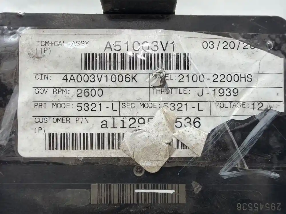 (Used) 2009 Allison 2200HS , TRANSMISSION ECM- Part Number: 29545536, Serial Number: BK5536N19029047D, 12 Volts A51003V1, CIN: 4A003V1006K, GOV RPM: 2600, THROTTLE: J--1939, PRI MODE: 5321-L, SEC MODE: 5321-L, E11, 032849, 10R022849, MODEL: A51 Supplier Number: ATA5101, Plug Pins: 80 Pins Plug Rectangular, Reference images for condition. ,