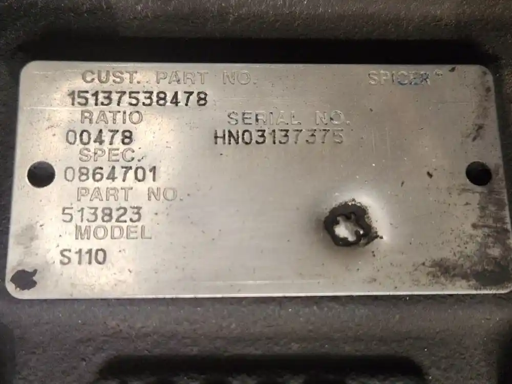 (Used) 2009 Chevrolet C5500, DIFFERENTIAL GEARS ONLY- Part Number: 513823, Serial Number: HN03137375, Make: Spicer, Model: S110, Ratio: 4.78, Capacity: 19,500 Lbs, Reference images for condition,