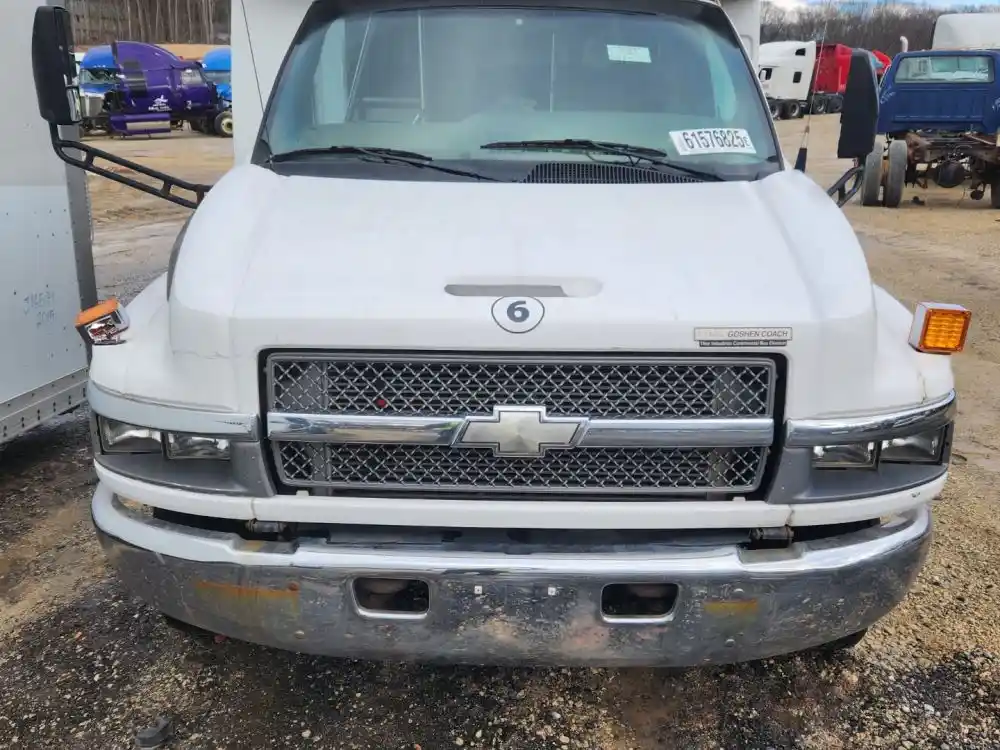 (Used) 2009 Chevrolet C5500, HOOD ASSEMBLY- Length: 31.5", From cowl to grille, Color: White, Material: Fiberglass, It's Cracked!! Reference images for condition,