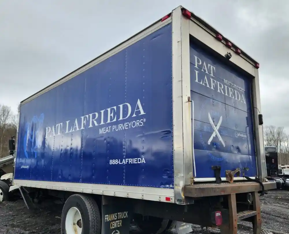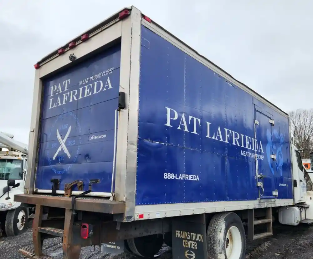 (Used) 2009 Hino 268, BOX BODY- Serial Number: MPA07RB91362002, Make: Morgan, Model: GVSR09120096, Color: Blue, Material: Aluminum, Inside Dimensions: L=7.5 FT, H=7.1 FT, Entry Dimensions: L=6.10 FT, H=6.4 FT, Outside Dimensions: L=8 FT, H=8 FT, Length: 20.6 FT, Damage Reference images for condition,
