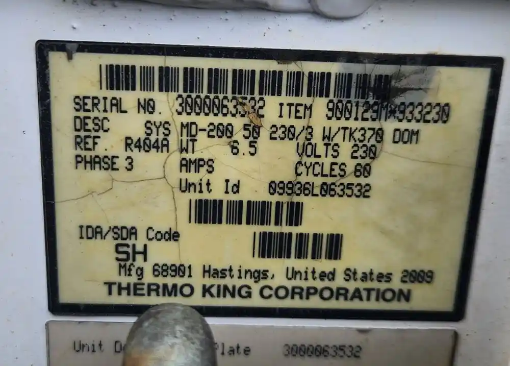 (Used) 2009 Hino 268, REEFER UNIT- Part Number: 900129M*933230, Serial Number: 3000063532, Make: Thermo King, Model: MD-200, Ref.: R404A, WT: 6.5, Volts: 230, Phase: 3, Cycles: 60, ENGINE INFORMATION- Engine No.: B13940, Engine Family: AYDXL0.85W3N, Engine Model: TK370, Displacement: 0.854L, E.C.S: EM, Reference images for condition,