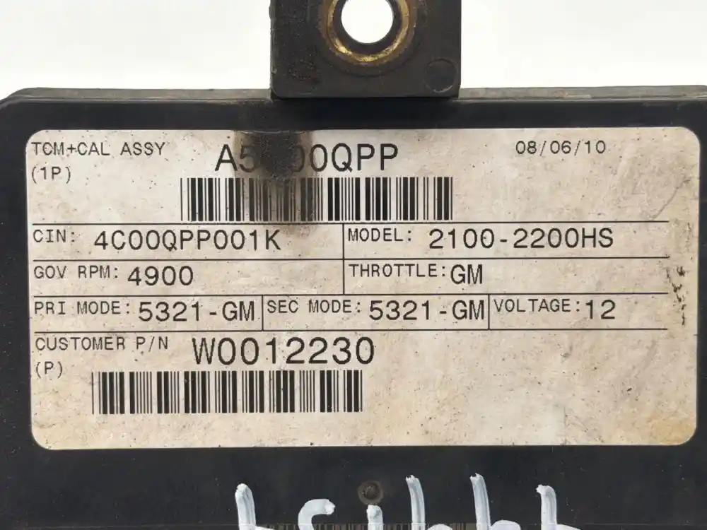(Used) 2010 Allison 2100-2200HS , TRANSMISSION ECM- Part Number: 29545536, Serial Number: BK5536N101760104, MODEL: 2100-2200HS, 12 Volts A5100QPP, CIN: 4C00QPP001K, GOV RPM: 4900, THROTTLE: GM, PRI MODE: 5321- GM, SEC MODE: 5321- GM, CUSTOMER PIN: W0012230, E11, 032849, 10R022849, Supplier Number: ATA5101, Plug Pins: 80 Pins Plug Rectangular, Reference images for condition. ,