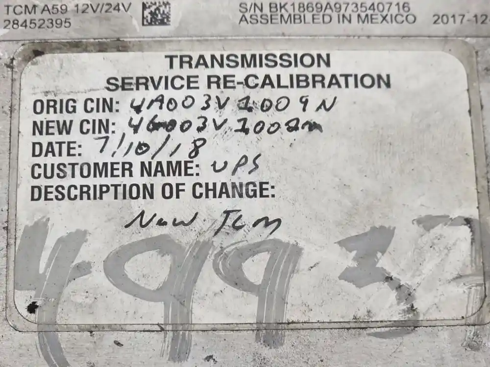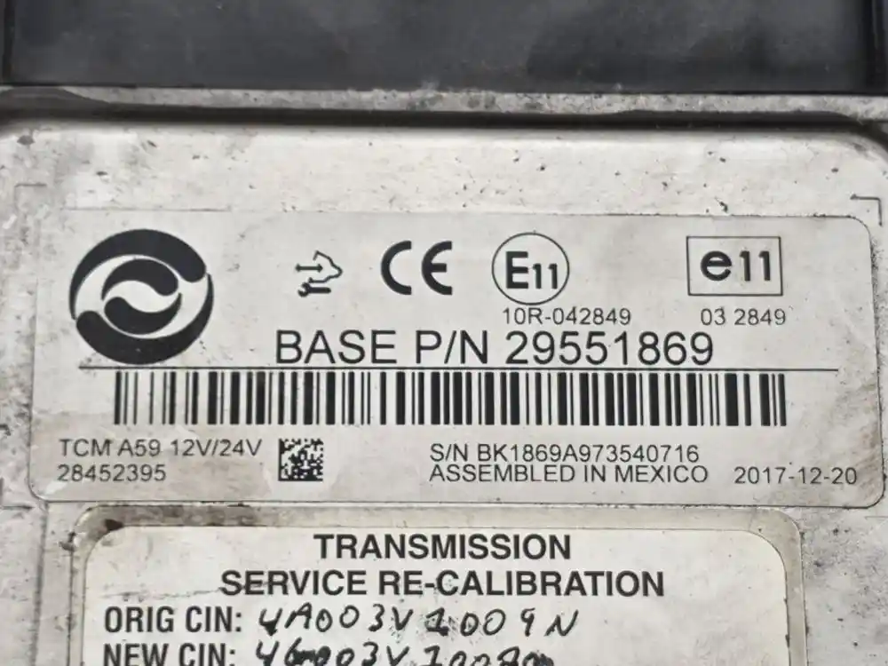 (Used) 2010 Allison 2200HS, TRANSMISSION ECM- Part Number: 29551869, Serial Number: BK1869A973540716 TCM Model: A59, E11 10R-042849, 03 2849 TCM A59 12V\24V 28452395 ORIN CIN:4A003V1009N NEW CIN: 4G003V1002N 1 Rectangular Plug with 80 Pins, Reference images for condition,