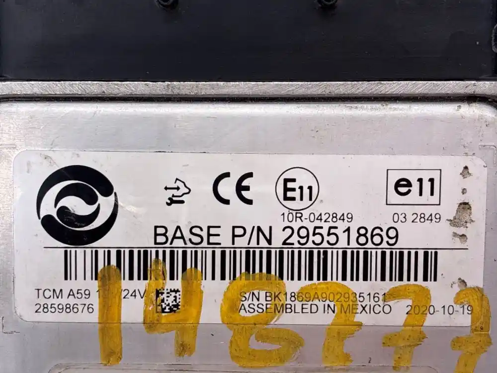 (Used) 2010 Allison 2200HS, TRANSMISSION ECM- Part Number: 29551869, Serial Number: BK1869A902935161, TCM Model: A59, E11 10R-042849, 03 2849 12V\24V 28598676, CIN: 4H-00MV6-002 B, A5900MV6, 1 Rectangular Plug with 80 Pins, Reference images for condition,