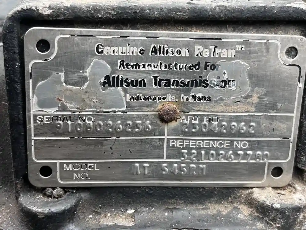 (Used) 2010 Allison (AT), TRANSMISSION ASSEMBLY- Model: AT545RM, Serial Number: 910826236, Part Number: 29042962, Reference images for condition, HWY,