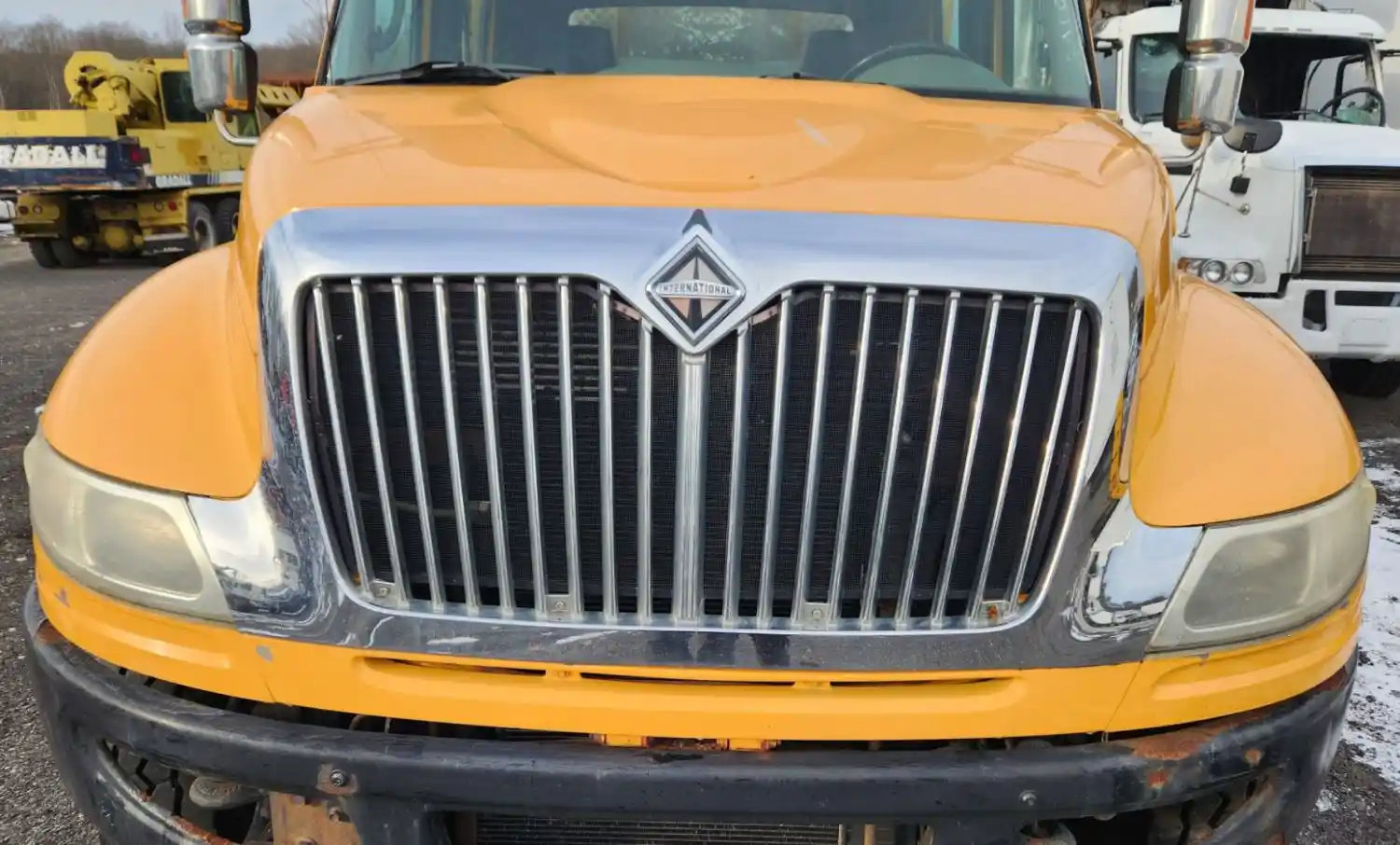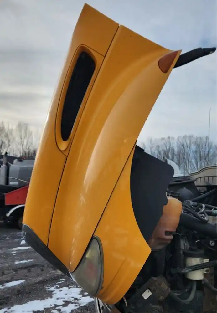 (Used) 2010 International 4400, HOOD ASSEMBLY- Length: 38" From Cowl to grille, Color: Yellow, Material: Fiberglass, Reference images for condition,
