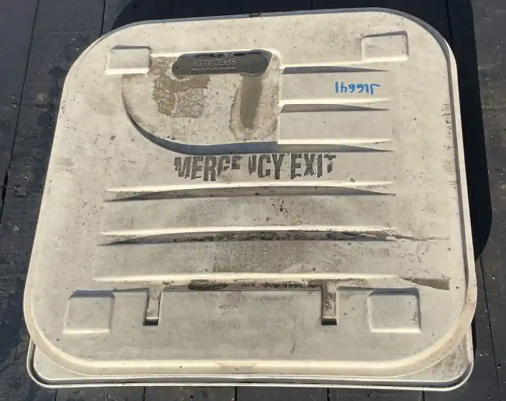 (Used) 2011 Freightliner B2, EMERGENCY EXIT ROOF HATCH- Material: Plastic and Steel, Color: White, Outside Dimensions: 27 3/4" x 27 3/4", Inside Dimensions: 27" x 27",