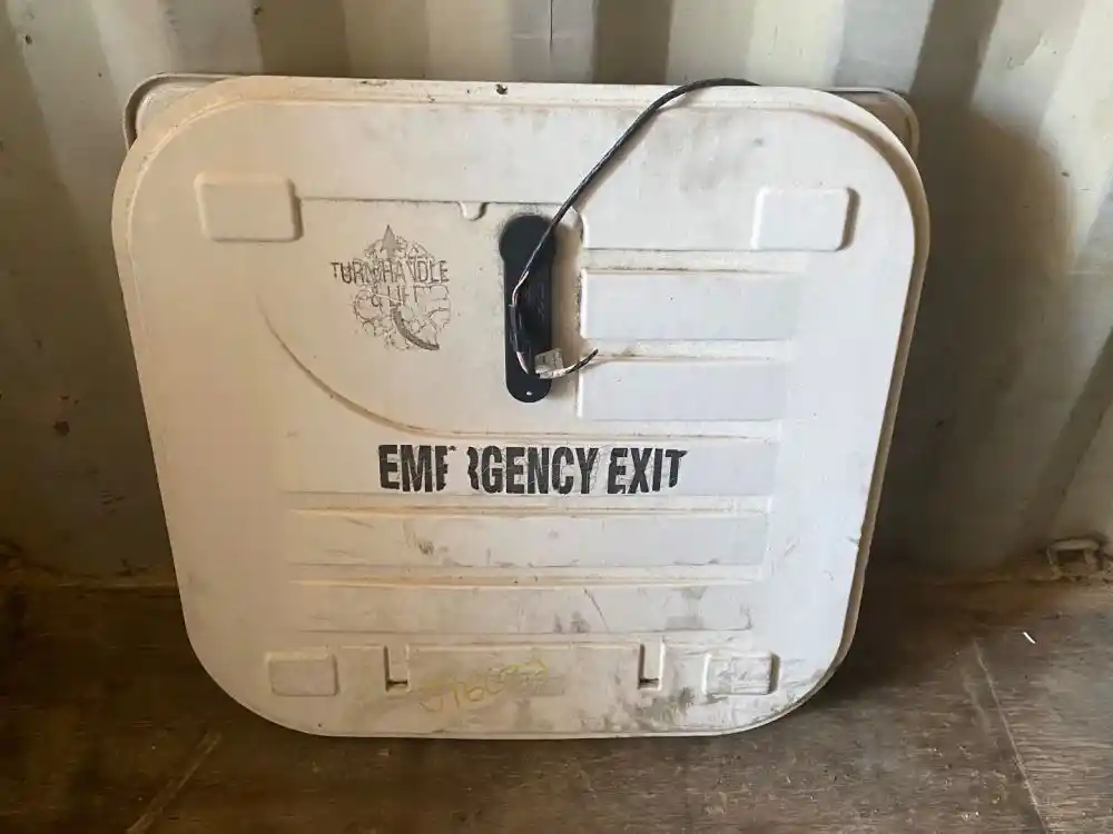 (Used) 2011 Freightliner B2, EMERGENCY EXIT ROOF HATCH- Material: Plastic and Steel, Color: White, Outside Dimensions: 27 3/4" x 27 3/4", Inside Dimensions: 27" x 27",
