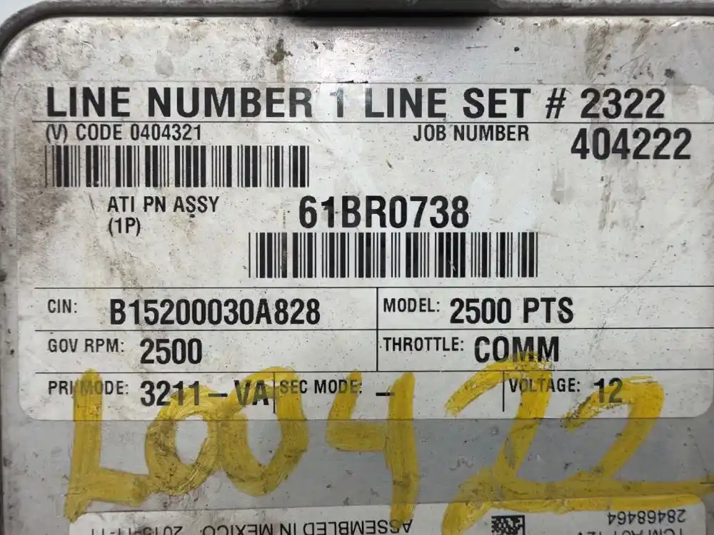 (Used) 2012 Allison 2500 PTS , TRANSMISSION ECM- Part Number: 29550689, Serial Number: BK0689A153150802, (V) CODE: 0404321, JOB NUMBER 40422, ATI PN ASSY (1P) 61BR0738, CIN: B15200030A828, MODEL: 2500 PTS, GOV RPM: 2500, THROTTLE: COMM, PRI MODE: 3211-VA, SEC MODE: --, VOLTAGE: 12V, TCM Model: A61, E11, 10R-042849, 1 Rectangular Plug with 80 Pins, Reference images for condition,