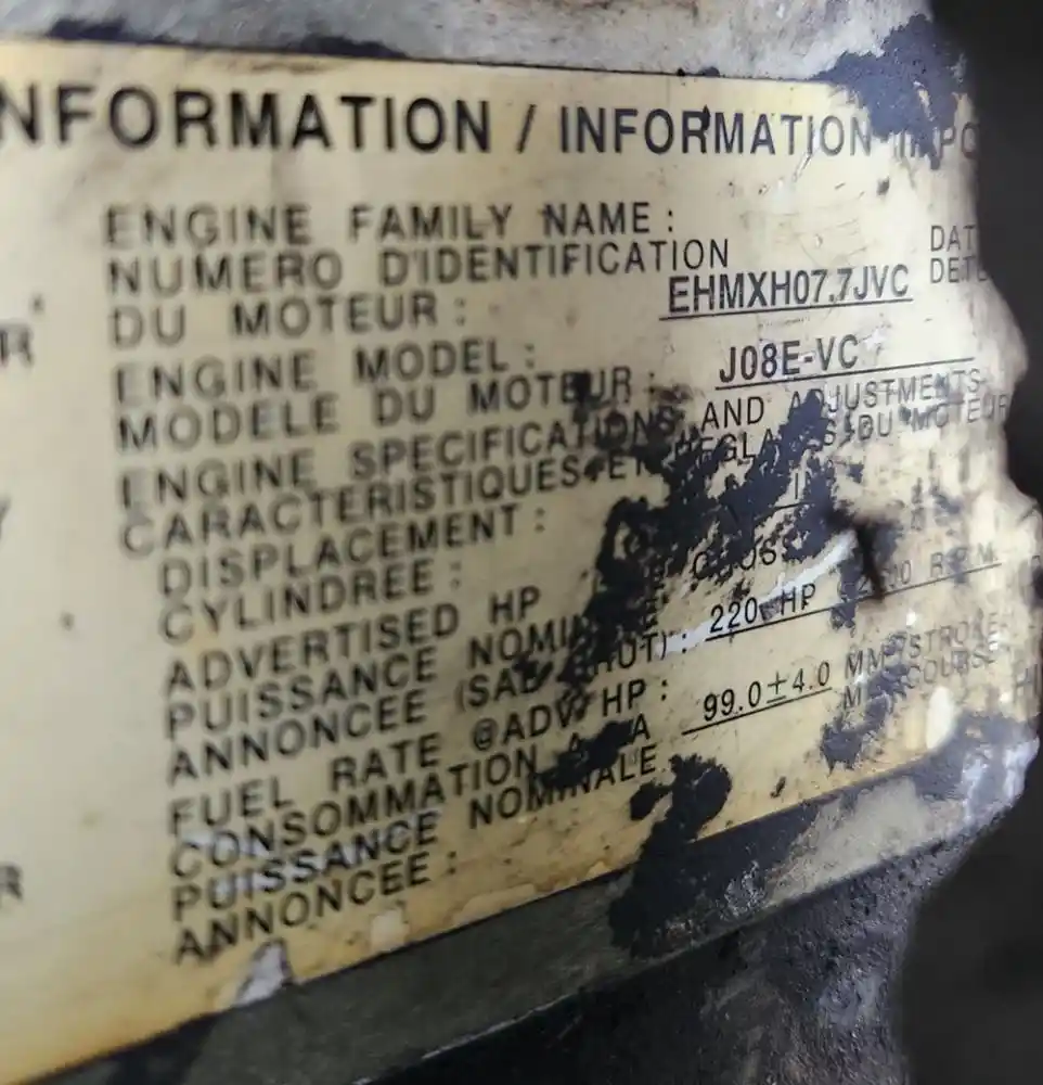 (Used) 2014 Hino J08E-VC, ENGINE ASSEMBLY- Family Number: EHMXH07.7JVC, Displacement: 7.6L, Horsepower: 220, Serial Number: TBD, E.C.S: DFI, TC, CAC, ECM, PTOX, OC, EGR, SCR,