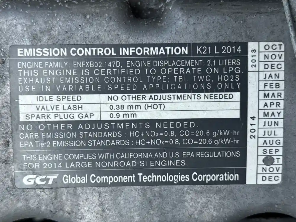 (Used) 2014 Mitsubishi FG25N, ENGINE ASSEMBLY Family Number: ENFXB02.147D, Displacement: 2.14L, E.S.C.: TBI, TWC, HO2S, Reference images for condition, ,