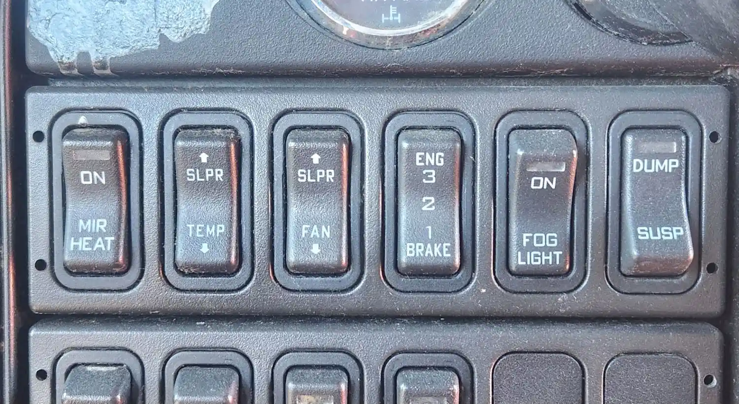 (Used) 2015 International PROSTAR, MISCELLANEOUS DASH SWITCHES- Controls: On-Mir Heat, SLPR-Temp, SLPR-Fan, Engine 1 2 3 Brake, On/Fog Light, Dump Susp, Reference images for condition, ,