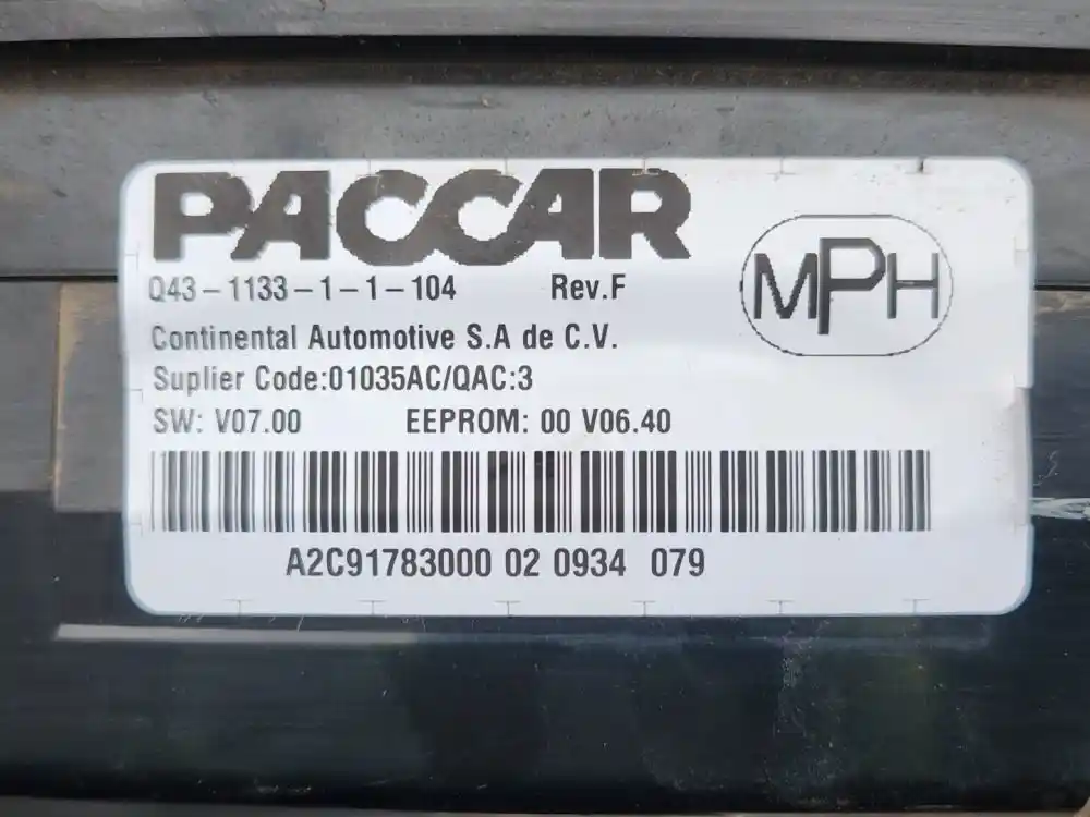 (Used) 2015 Kenworth T880, INSTRUMENT CLUSTER- Part Number: Q43-1164-1-2-104, Gauges: Battery Volts, Engine Oil Temp, Water Temperature, RPM, Fuel Level, MPH, Brake Air Pressure, Primary and Secondary Air Pressure, DEF Level, Material: Plastic, ,