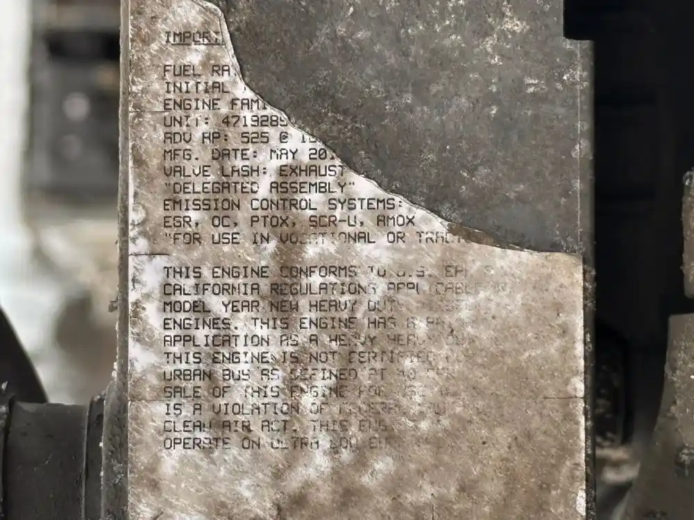 (Used) 2016 Detroit DD13, ENGINE ASSEMBLY- Family Number: GDDXH12.8FED, Displacement: 12.8L, Horsepower: 525, ESN: 471928S, ECS: DDI, TC, CAC, ECM, EGR, OC, PTOX, SCR-U, AMOX, Reference images for condition. ,