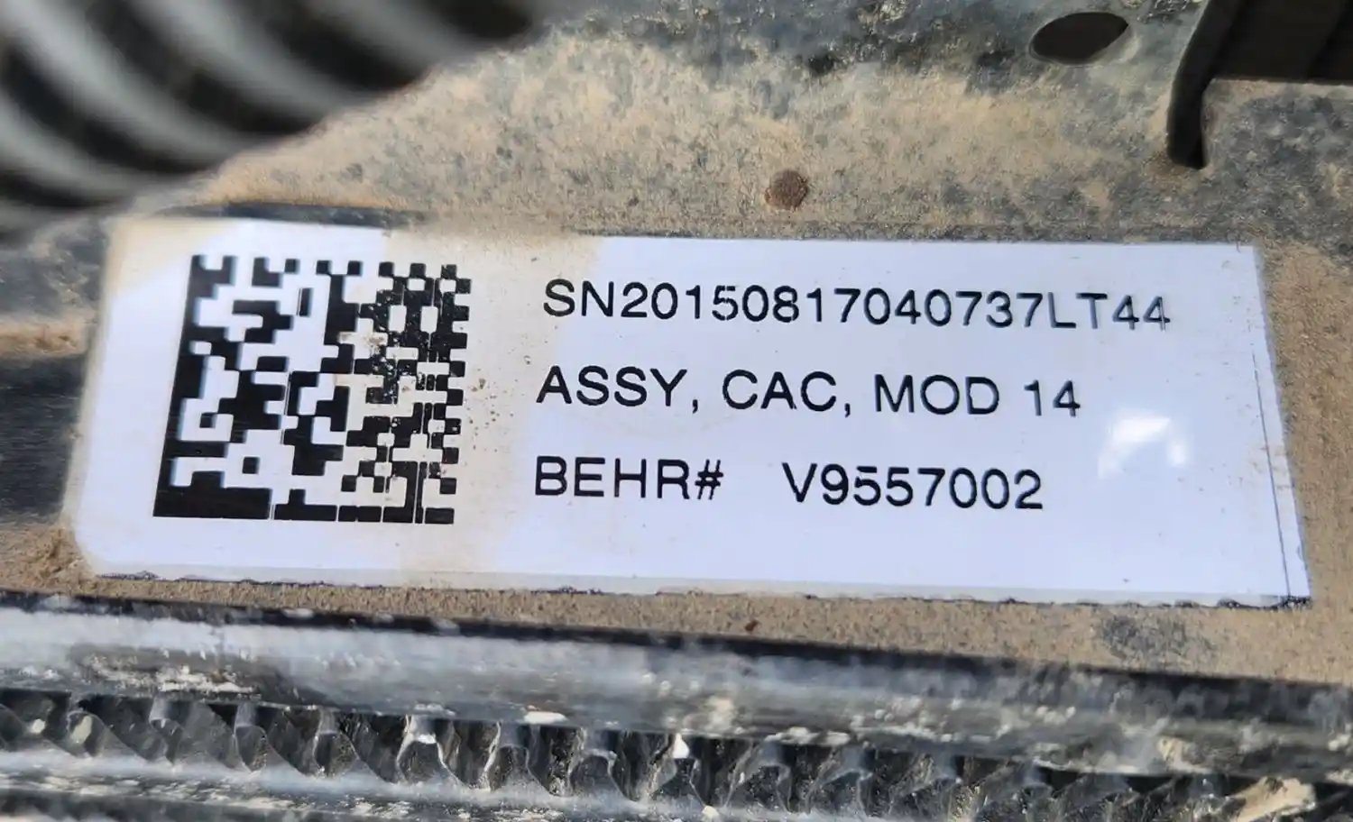(Used) 2016 Peterbilt 337, INTERCOOLER- Price is for Intercooler ONLY- Picture is for display only, Part Number: V9557002, Engine: PACCAR PX-9, Dimensions: L=38", H=21", Material: Aluminum, Less Radiator and Condenser Sold Separately, Reference images for condition,